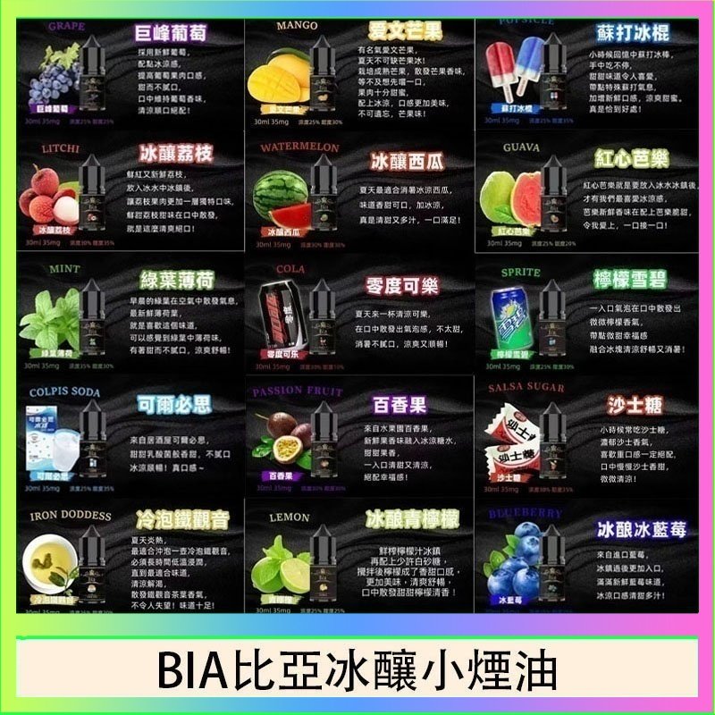 紅心芭樂, 檸檬雪碧, 可爾必思, 蘇打冰棍, 巨峰葡萄, 愛文芒果, 百香果, 冷泡鐵觀音, 荔枝, 沙士, 可樂, 西瓜, 青檸檬, 藍莓, 薄荷